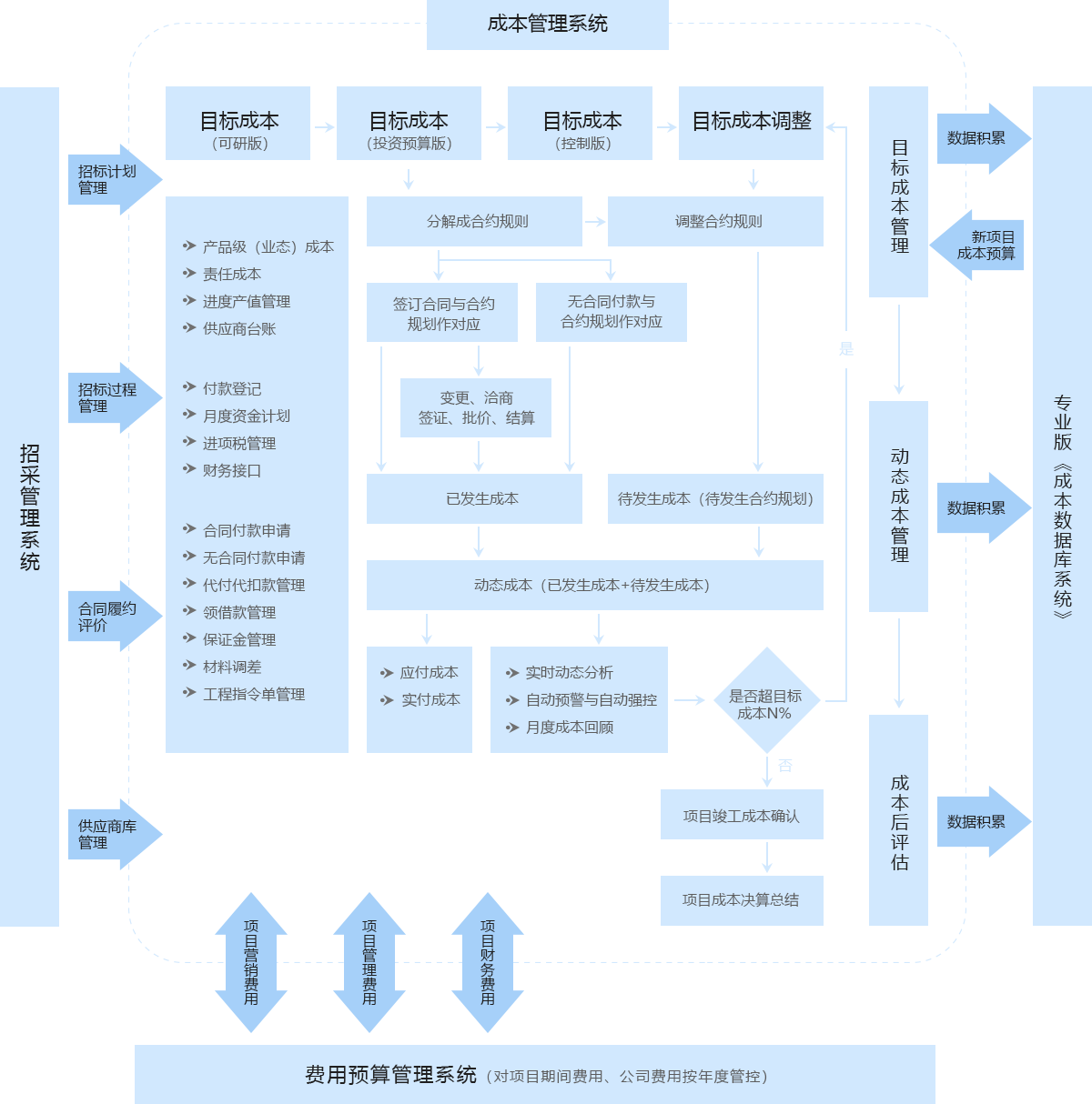 • 全業(yè)務(wù) 成本管理+費(fèi)用管理+招采管理+成本數(shù)據(jù)庫(kù)管理